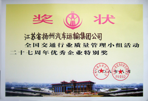 全國交通行業(yè)質(zhì)量管理小組活動(dòng)二十七周年優(yōu)秀企業(yè)特別獎(jiǎng)獎(jiǎng)狀