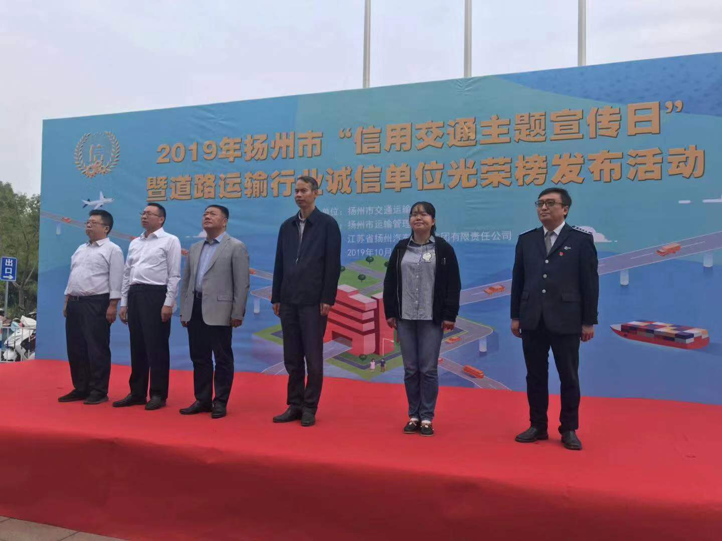 活動由揚(yáng)州市交通運(yùn)輸局主辦,市交通運(yùn)輸局、市信用辦、市運(yùn)管處、各區(qū)交通局等單位領(lǐng)導(dǎo),市道路運(yùn)輸行業(yè)誠信企業(yè)代表列隊(duì)參加,揚(yáng)州汽車站組織部分黨員和職工參加了活動。