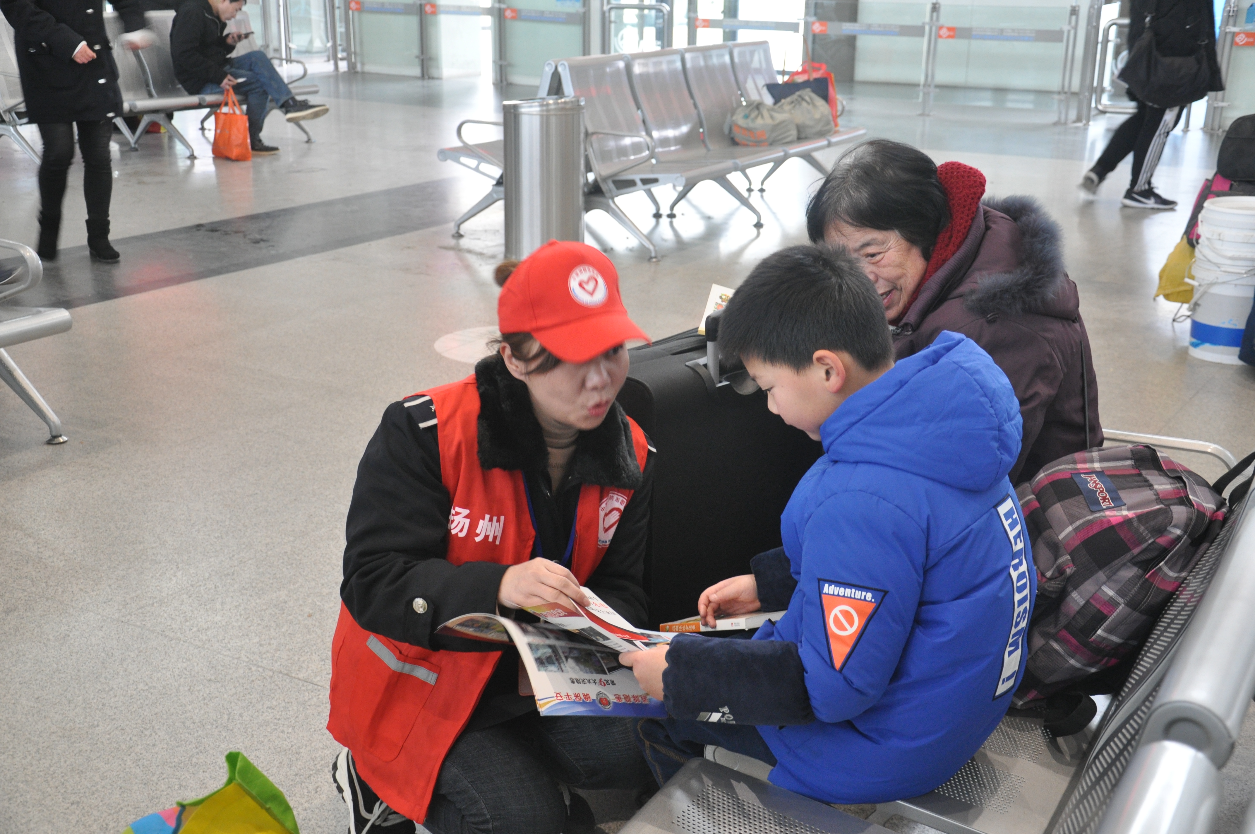 活動(dòng)現(xiàn)場(chǎng)提供了種類繁多的書籍和春聯(lián),旅客們?cè)谛麄髋_(tái)前駐足,為孩子、親人或自己精心挑選,氣氛熱烈。活動(dòng)現(xiàn)場(chǎng)還安排了揚(yáng)汽集團(tuán)志愿者向來往旅客進(jìn)行消防安全知識(shí)的宣傳和講解。