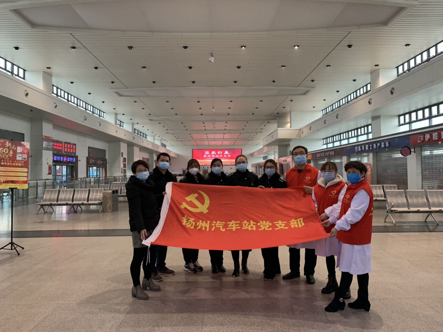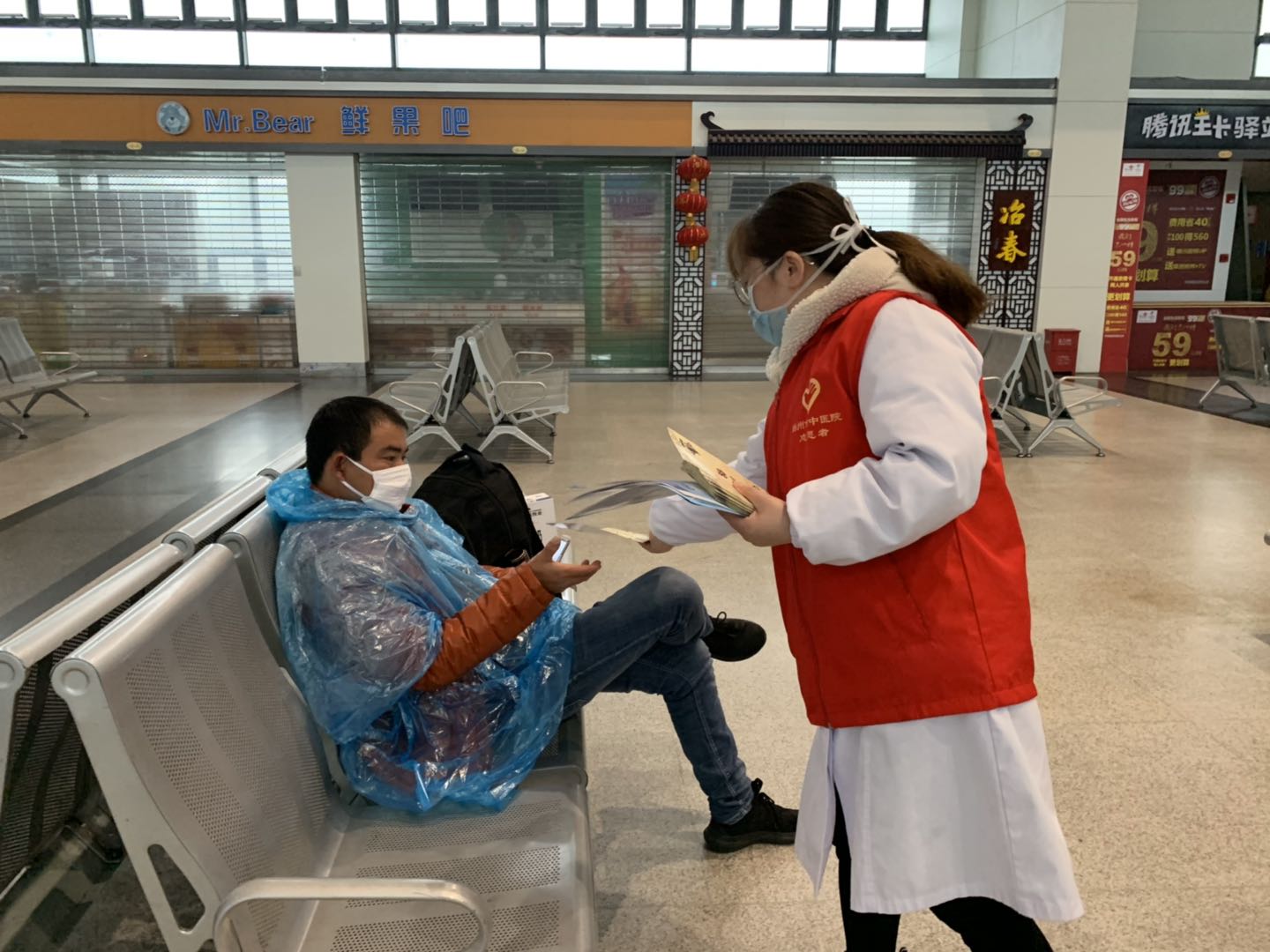 2月25日揚州站復工復產的第二天,揚州市中醫(yī)院抗“疫”小分隊為揚州汽車站里的旅客們和堅守在一線崗位的職工送來了抗疫藥品和義診服務。