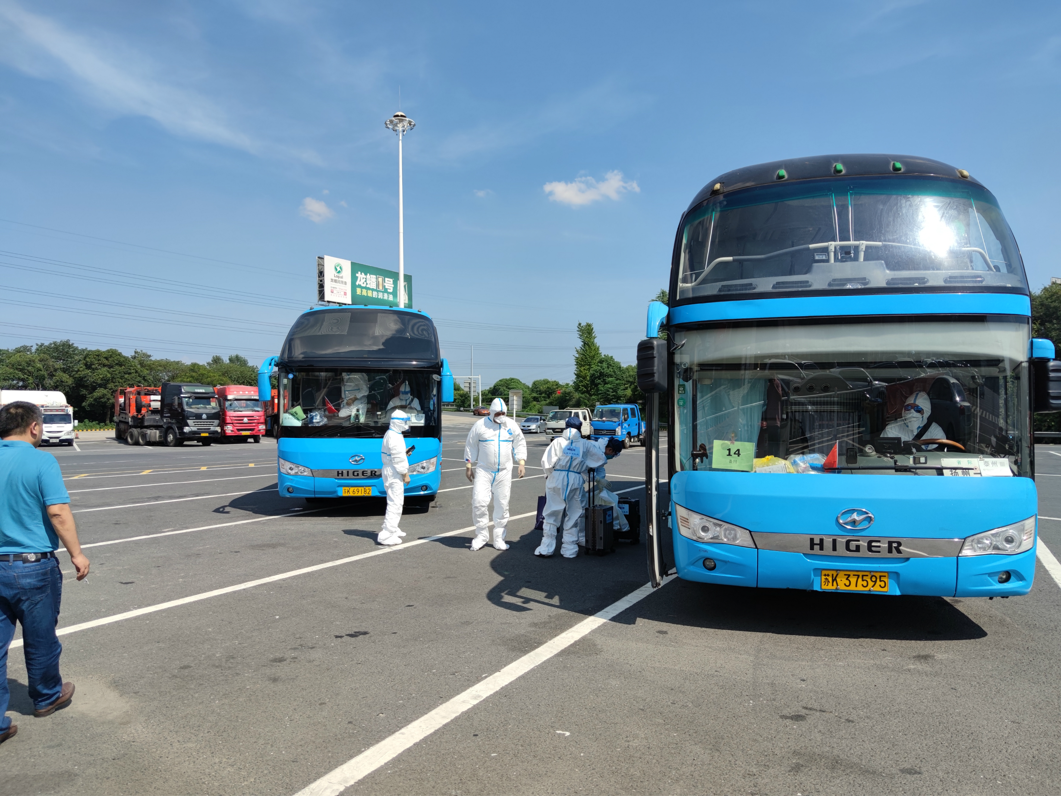 當(dāng)天氣溫達到36度,機坪溫度更是超過50度,在這種酷暑下,駕駛員全身穿戴密閉的防護服,對行車安全是巨大的挑戰(zhàn)。龔宇峰董事長趕赴現(xiàn)場,再次對駕駛員抗高溫,保安全進行了交代。中午11時40分,首批車輛從機場出發(fā),至14時11分最后一批車出發(fā),將二百多名境外返揚人員運送至相關(guān)酒店。16時50分,所有車輛圓滿完成任務(wù),回到指定地點,接受消毒和檢測。