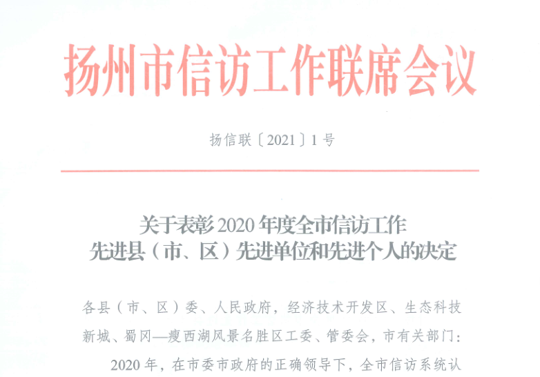 近日,揚州市信訪工作聯(lián)席會議印發(fā)《關于表彰2020年度全市信訪工作先進縣(市、區(qū))先進單位和先進個人的決定》,揚汽集團汽車東站黨支部書記、副站長張彤獲信訪工作先進個人。
