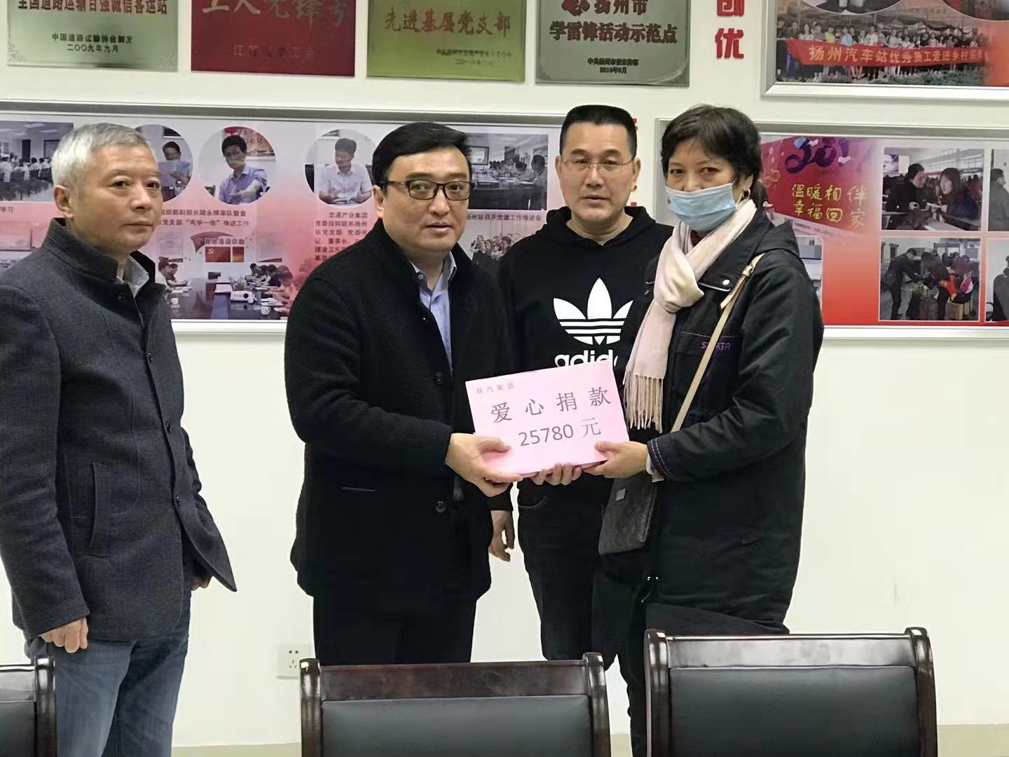 愛(ài)心點(diǎn)燃希望,真情傳遞溫暖,今年年初突發(fā)精神病的駕駛員馬安權(quán)一直牽動(dòng)著全司職工的心。因馬安權(quán)住在ICU病房無(wú)法到院看望,4月6日上午,揚(yáng)州汽車站工會(huì)和車站領(lǐng)導(dǎo)邀請(qǐng)馬安權(quán)家屬來(lái)到車站,將募捐到的兩萬(wàn)五千多元愛(ài)心捐款交到馬安權(quán)家屬手中。