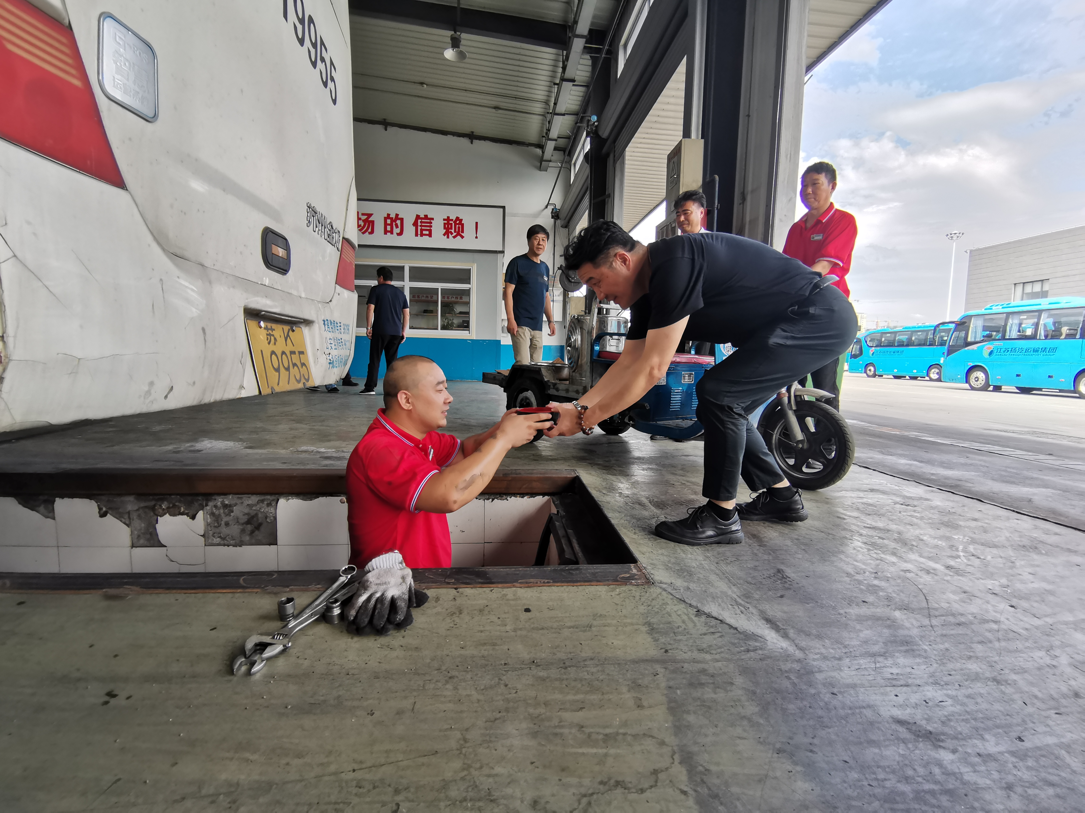 近日,揚(yáng)城入伏以來(lái),室外氣溫高達(dá)37℃。修理廠(chǎng)生產(chǎn)一線(xiàn)挑戰(zhàn)炎熱,作業(yè)于酷暑環(huán)境中,為集團(tuán)公司車(chē)輛維修保班保點(diǎn)。