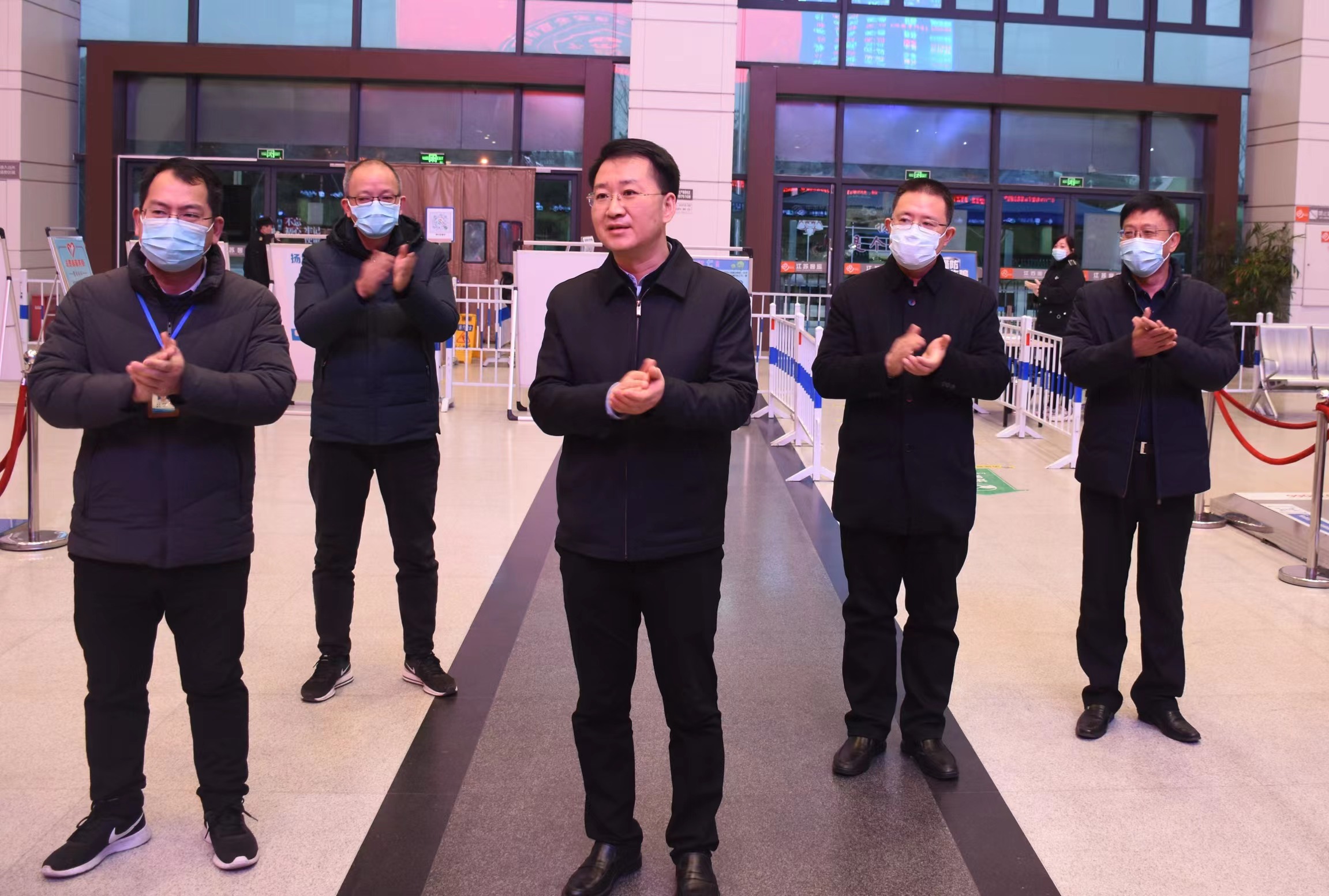 1月29日下午,邗江區(qū)區(qū)長張新鋼,副區(qū)長蔡衛(wèi)榮一行來到揚州汽車客運站,慰問奮斗在一線的防疫工作人員并送上了黨和政府的關(guān)懷與溫暖。邗江區(qū)交通運輸局黨委書記、局長顧其軍,交通產(chǎn)業(yè)集團副總經(jīng)理、揚汽集團黨委書記、董事長龔宇峰,揚汽集團副總經(jīng)理徐建波及相關(guān)負責(zé)人陪同。