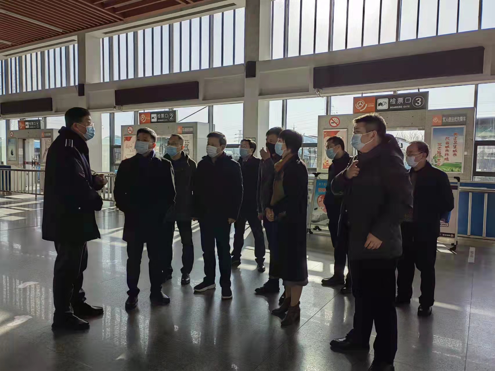朱定金強(qiáng)調(diào),春節(jié)假期接近尾聲,返程高峰即將到來(lái),車站旅客人數(shù)將有所增加,值班值守的人員要繼續(xù)堅(jiān)守崗位,做好個(gè)人防護(hù),同時(shí)注意防寒防暖。車站要扎實(shí)做好春節(jié)各項(xiàng)安全防范工作,牢固樹立客運(yùn)站的安全發(fā)展理念,疫情防控工作時(shí)刻不能松懈,嚴(yán)格按照規(guī)定對(duì)場(chǎng)站、車輛進(jìn)行通風(fēng)消毒,嚴(yán)查旅客健康碼和體溫檢測(cè),提醒旅客全程規(guī)范佩戴口站、落實(shí)好“一米線”等要求。常態(tài)化疫情防控下的春運(yùn),車站服務(wù)不能打折扣,用心守護(hù)好江都的大門,讓旅客出行變的更有溫度。
