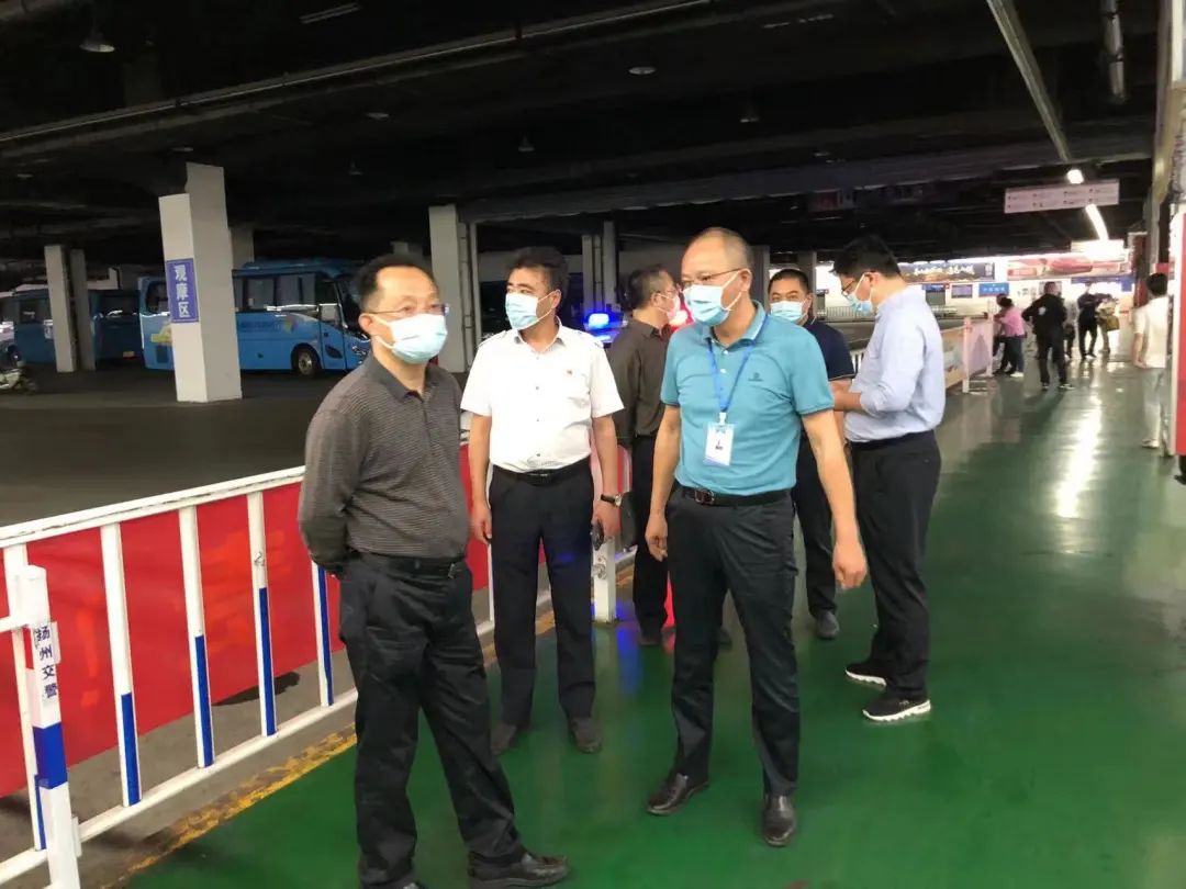 9月30日下午,市交通運(yùn)輸局副局長(zhǎng)楊步云帶隊(duì)督導(dǎo)檢查揚(yáng)州汽車站國(guó)慶節(jié)前疫情防控工作,揚(yáng)汽集團(tuán)副總經(jīng)理徐建波及相關(guān)部門負(fù)責(zé)人陪同檢查。