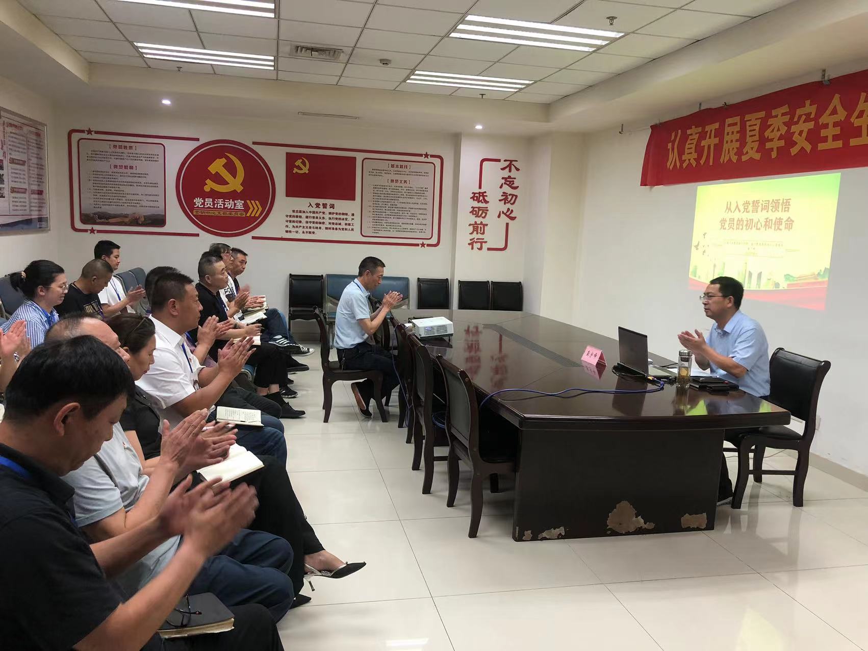 活動中,龔宇峰與全體黨員共同重溫了入黨誓詞,以《從入黨誓詞領(lǐng)悟黨員的初心和使命》為題,從學(xué)習(xí)入黨誓詞永葆入黨初心、踐行入黨誓詞牢記忠誠使命、銘記入黨誓詞夯實忠誠信仰、再到黨的二十大起航新征程等四個方面給大家上了一堂生動的主題黨課。