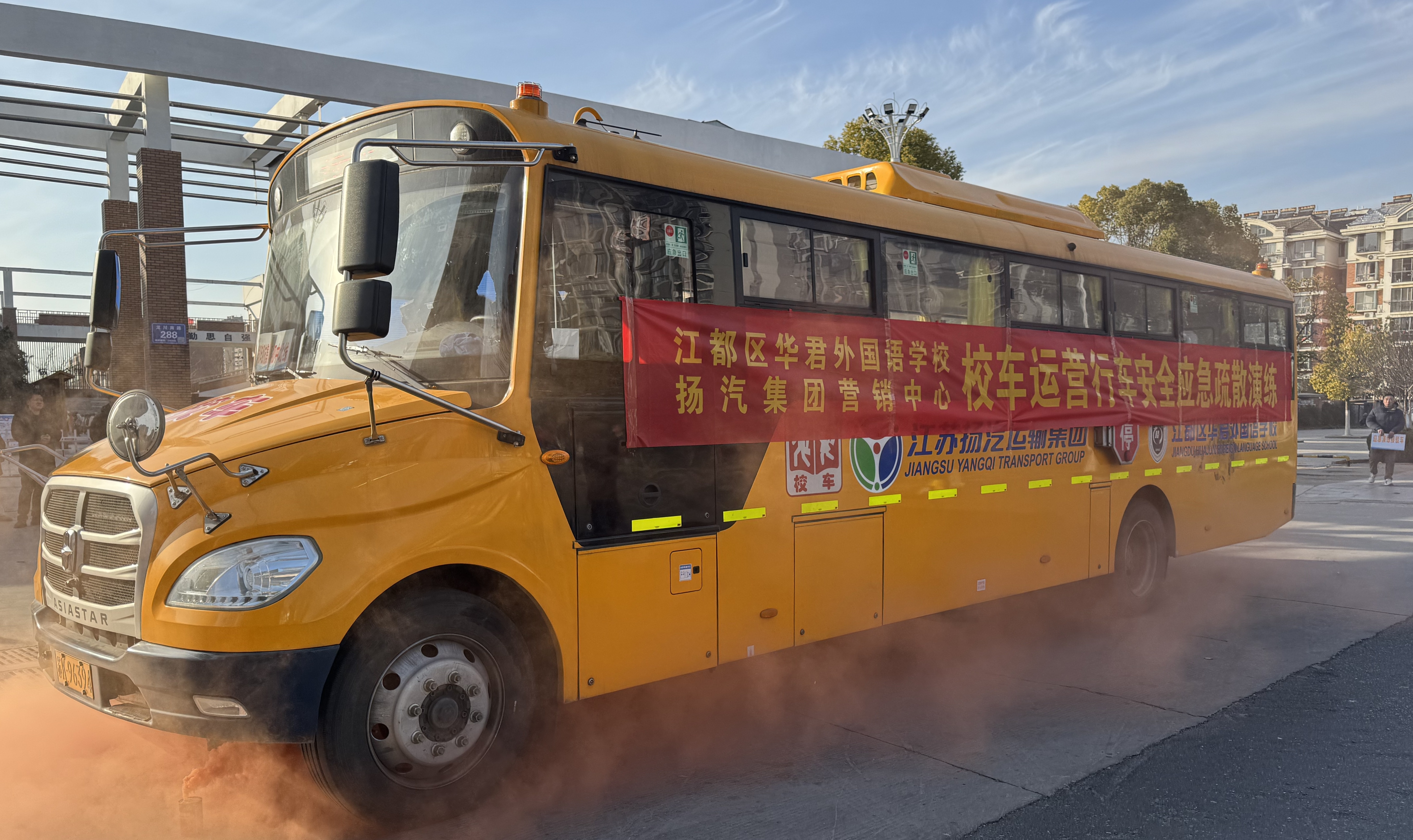 為進(jìn)一步加強校車安全管理,提高師生在校車行駛中的安全應(yīng)急疏散能力,近日,揚汽集團與江都區(qū)華君外國語學(xué)校聯(lián)合開展了校車運營行車安全應(yīng)急疏散演練。揚汽集團副總經(jīng)理劉旭亮,江都區(qū)華君外國語學(xué)校副校長張?zhí)毂,各單位的安全管理人員及師生共40余人參加本次活動。