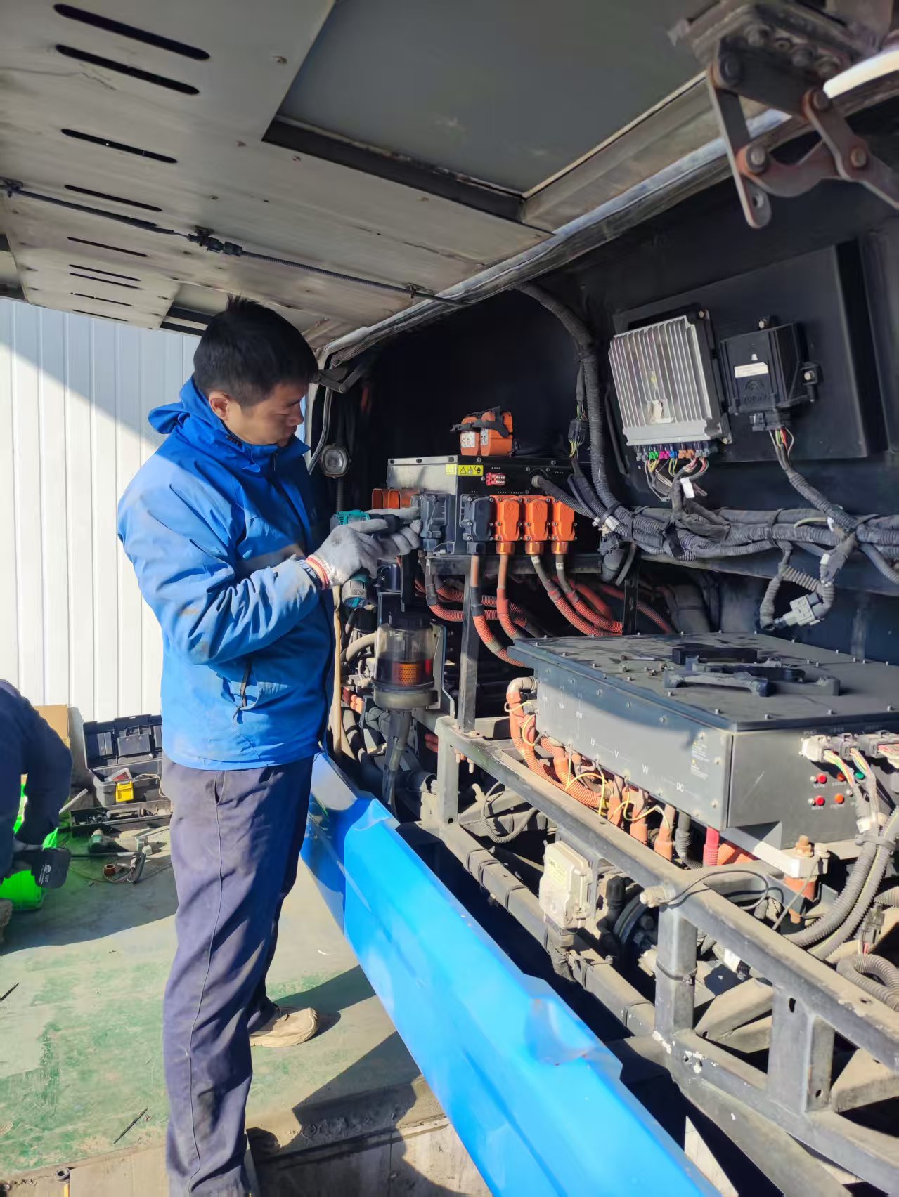 任務執(zhí)行期間,團隊克服了異地作業(yè)環(huán)境復雜、設備適配等多重實際困難,黨員同志始終沖鋒在前,帶領技術團隊優(yōu)化工序、協(xié)同配合,在保障作業(yè)安全與質量的前提下,全力壓縮工期,高效完成車輛換電,確保車輛按時恢復運營。過程中,團隊還圍繞操作規(guī)范、電池維保等內容,與當地技術人員開展了務實交流,助力提升區(qū)域運維能力。